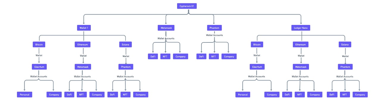 With Cypherock X1, the process is as simple as buying an X1 and creating two unique wallets, setting up your Cysync, and using both the unique wallets as distinguished portfolios. Users can create sub-portfolios for further dividing their company funds into different sub-portfolios like Marketing funds, development funds, Legal funds,s, etc. Users can use all these sub-portfolios from within their main portfolio.